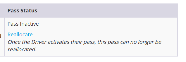 • If the pass is inactive and you wish to reallocate it, click 'Reallocate.'